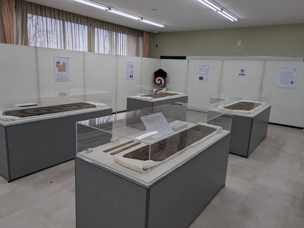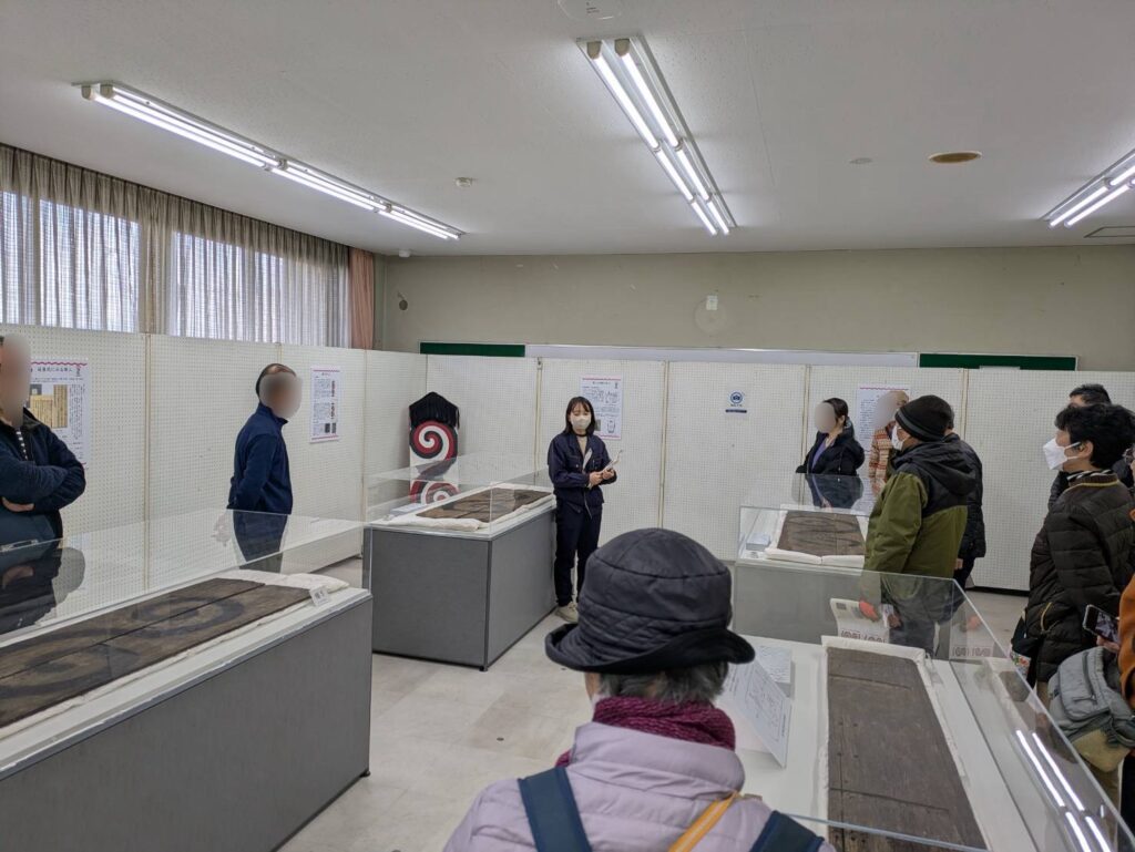 京田辺市中央公民館で、平城京から出土した『隼人の楯』の特別展示が行われ、私たちボランティアガイドは監視員の補助を務めました。併設の常設展示室も期間中は特別開館となり、同様にお手伝いしました。