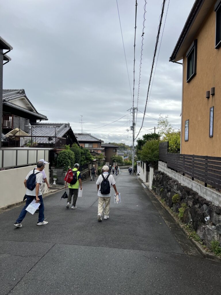 甘南備山の話などしながら薪小学校内の堀切古墳跡を通過し、京田辺市中央公民館へ。
