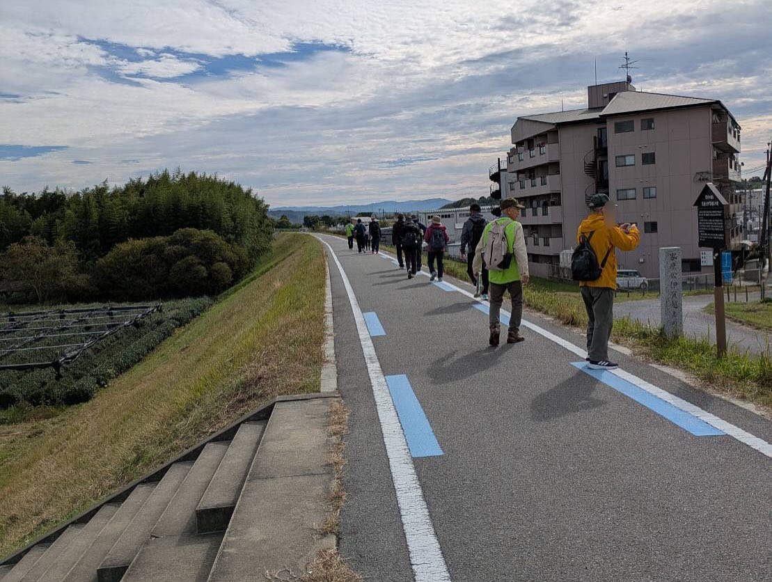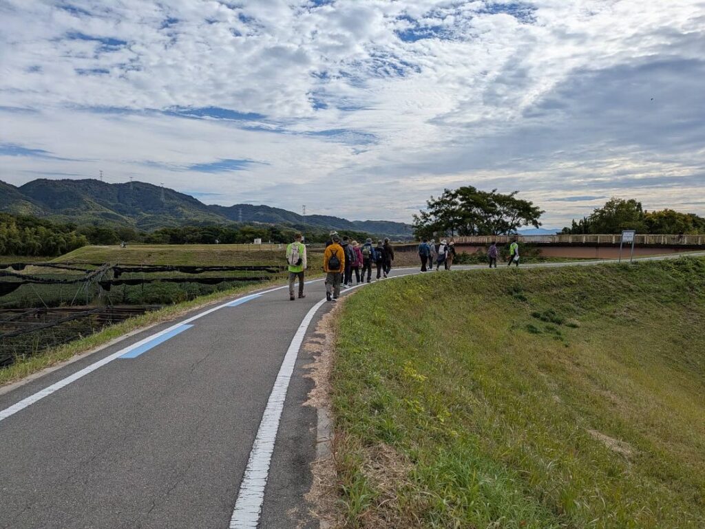 サイクリングロードということで、自転車の往来も多く、参加者の皆さんには「自転車が来ます」と声を掛け合いながら、安全に歩いていただきました。