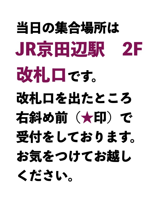 ※雨天中止です。(雨天中止の基準:前日正午の天気予報で京都南部の降水確率が50%以上、または警報発令時は中止。)