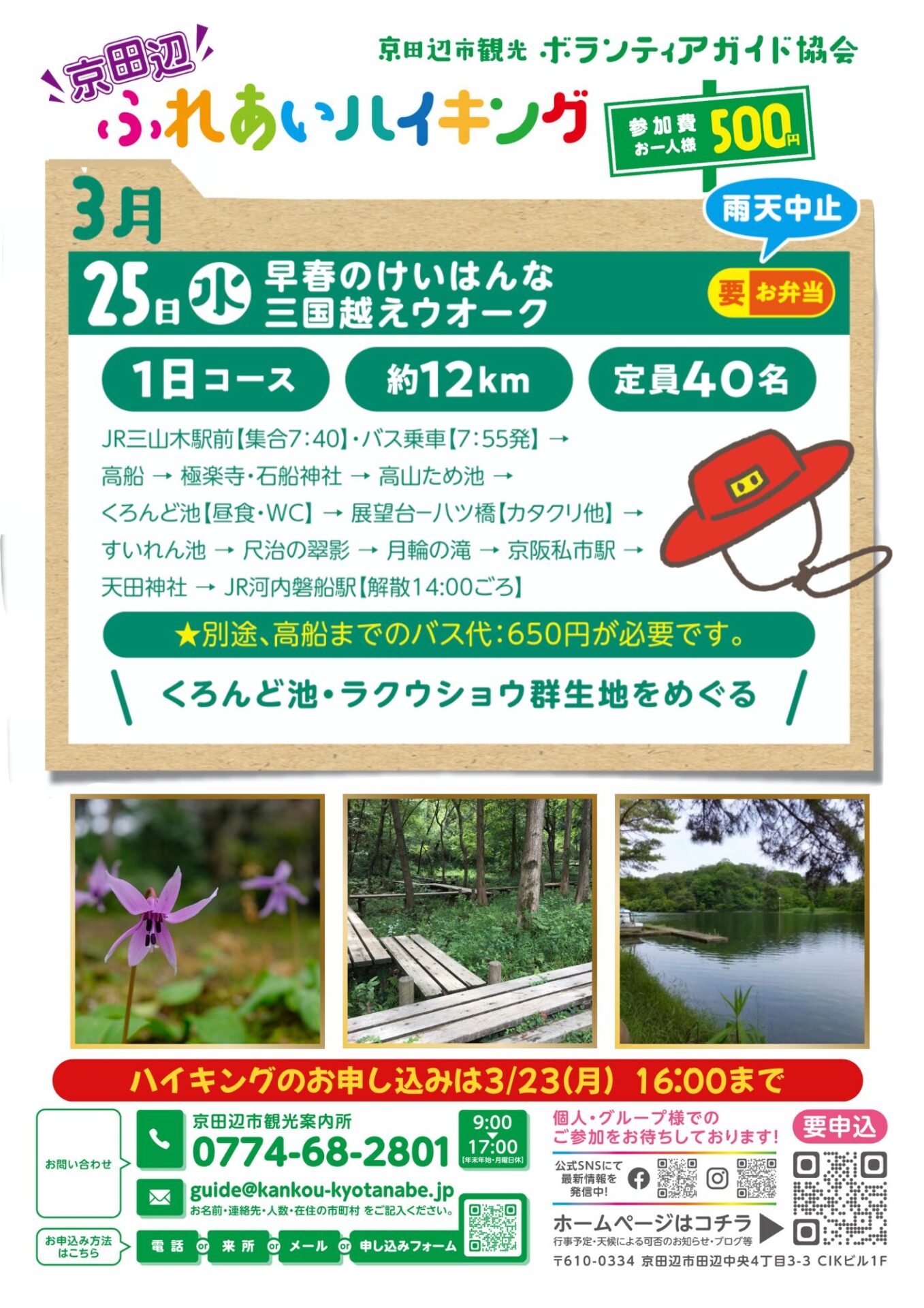 早春のけいはんな 三国越えウォーク 〜くろんど池・ラクウショウの群生地をめぐる〜