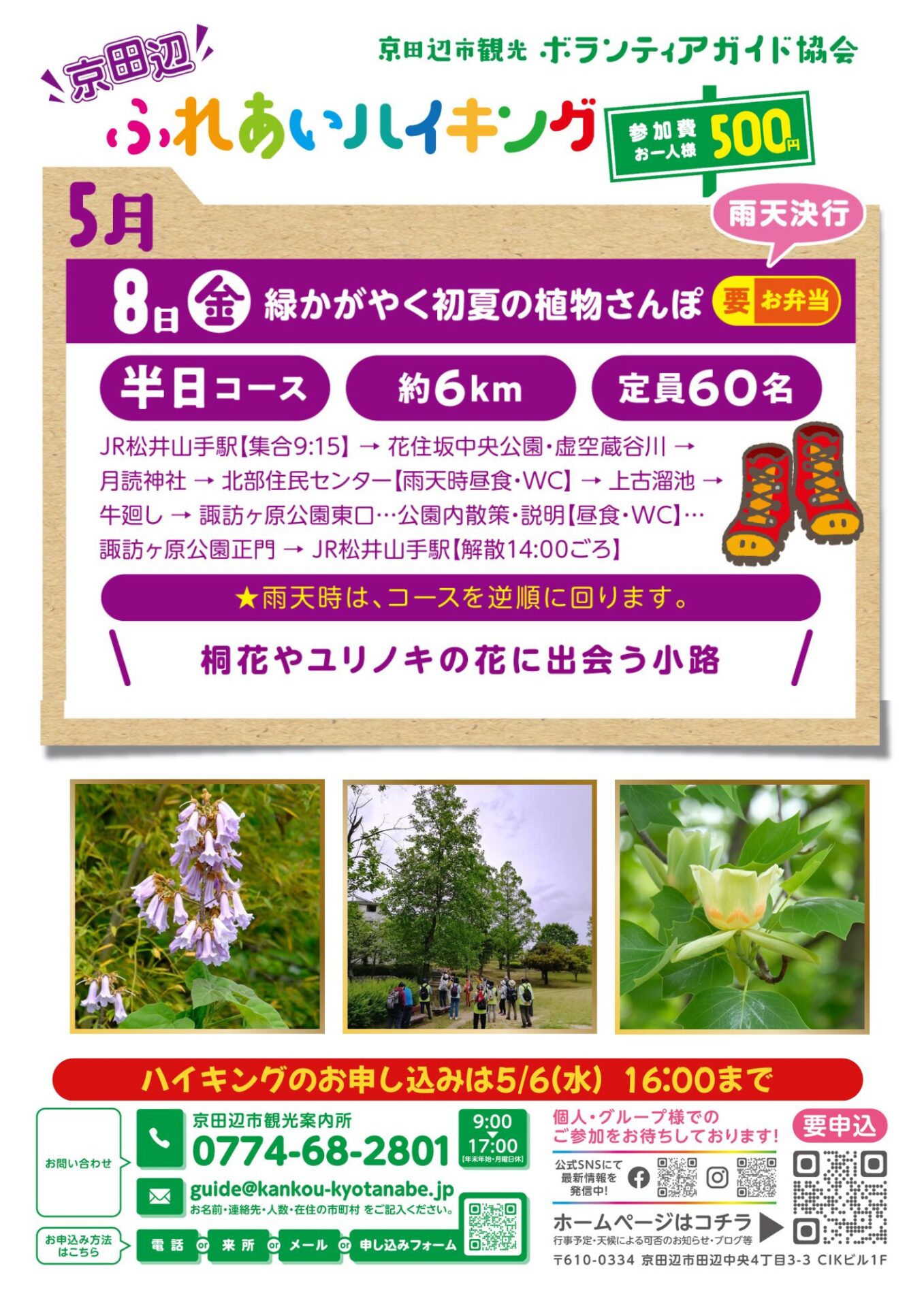 「京田辺市観光案内所」 ☎︎0774-68-2801 (午前 9 時~午後 5 時) Fax 0774-68-2817