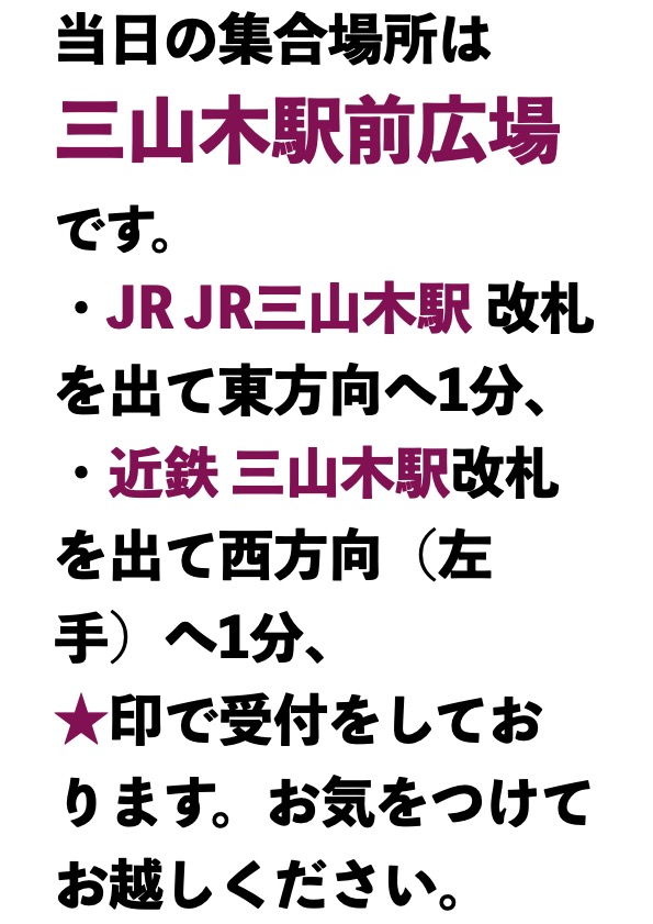 ※雨天決行です。(当日午前7時に開催地にて気象警報が発表されている場合は中止します。)